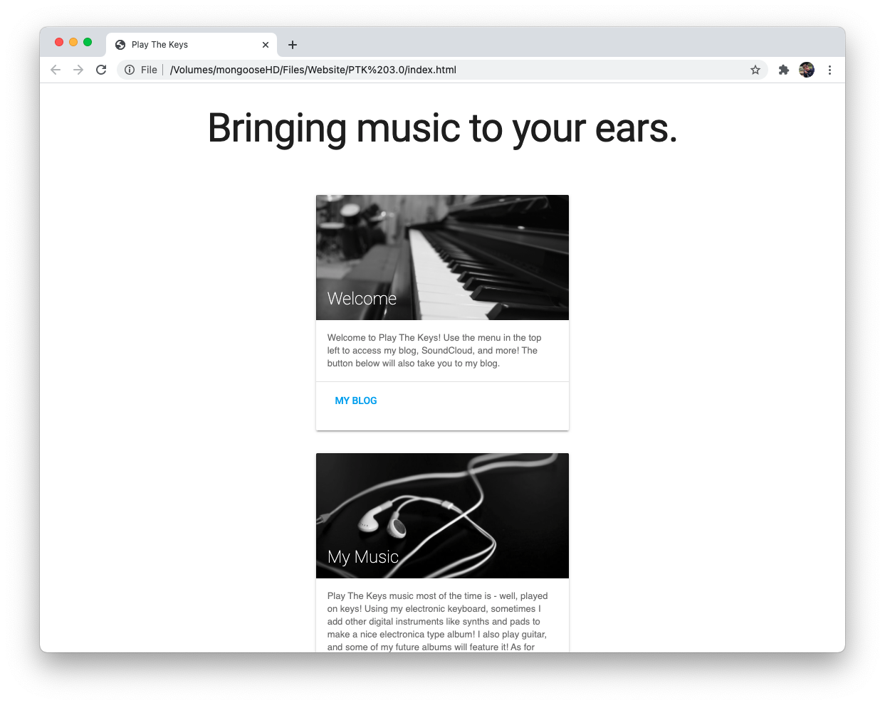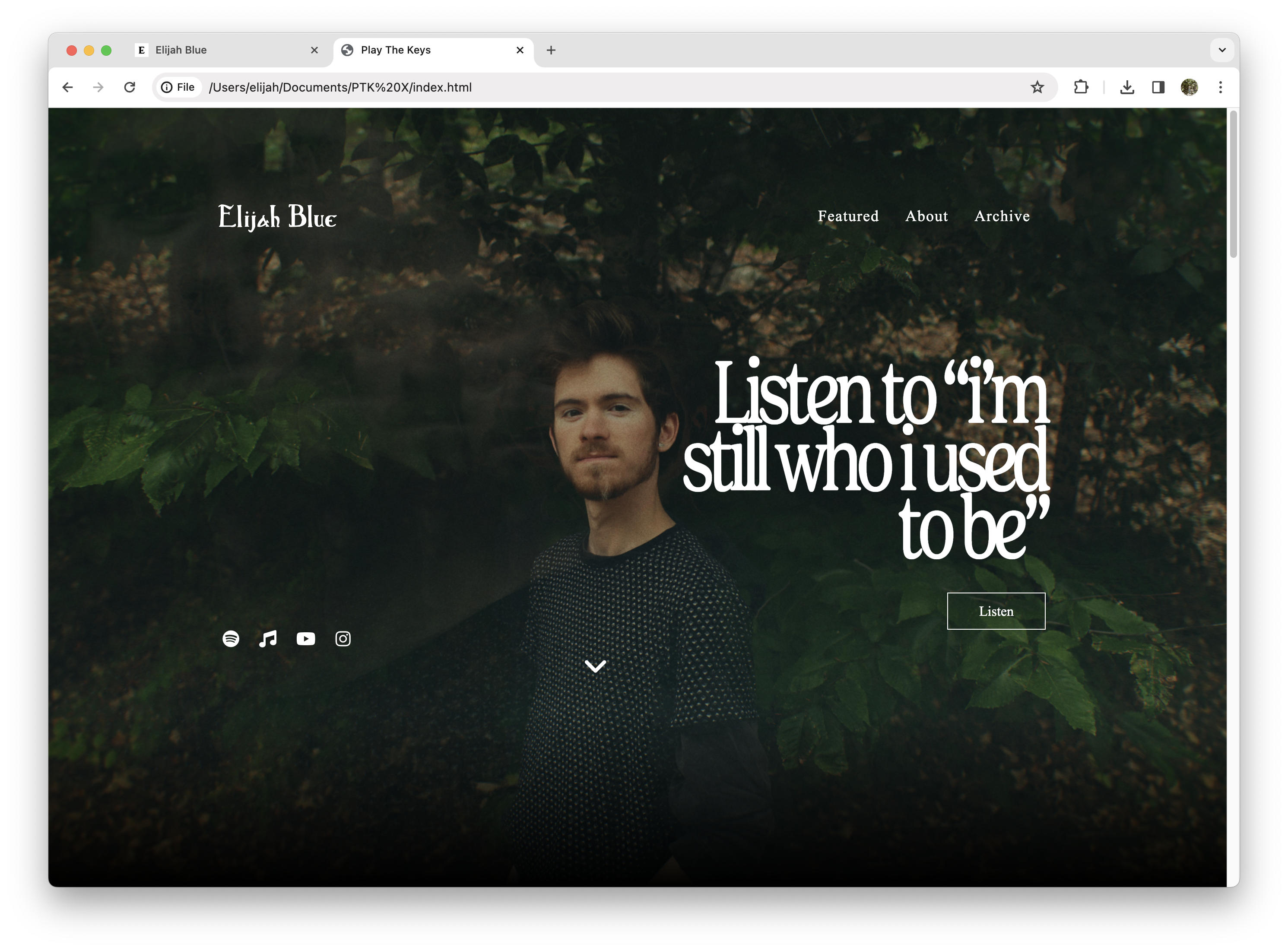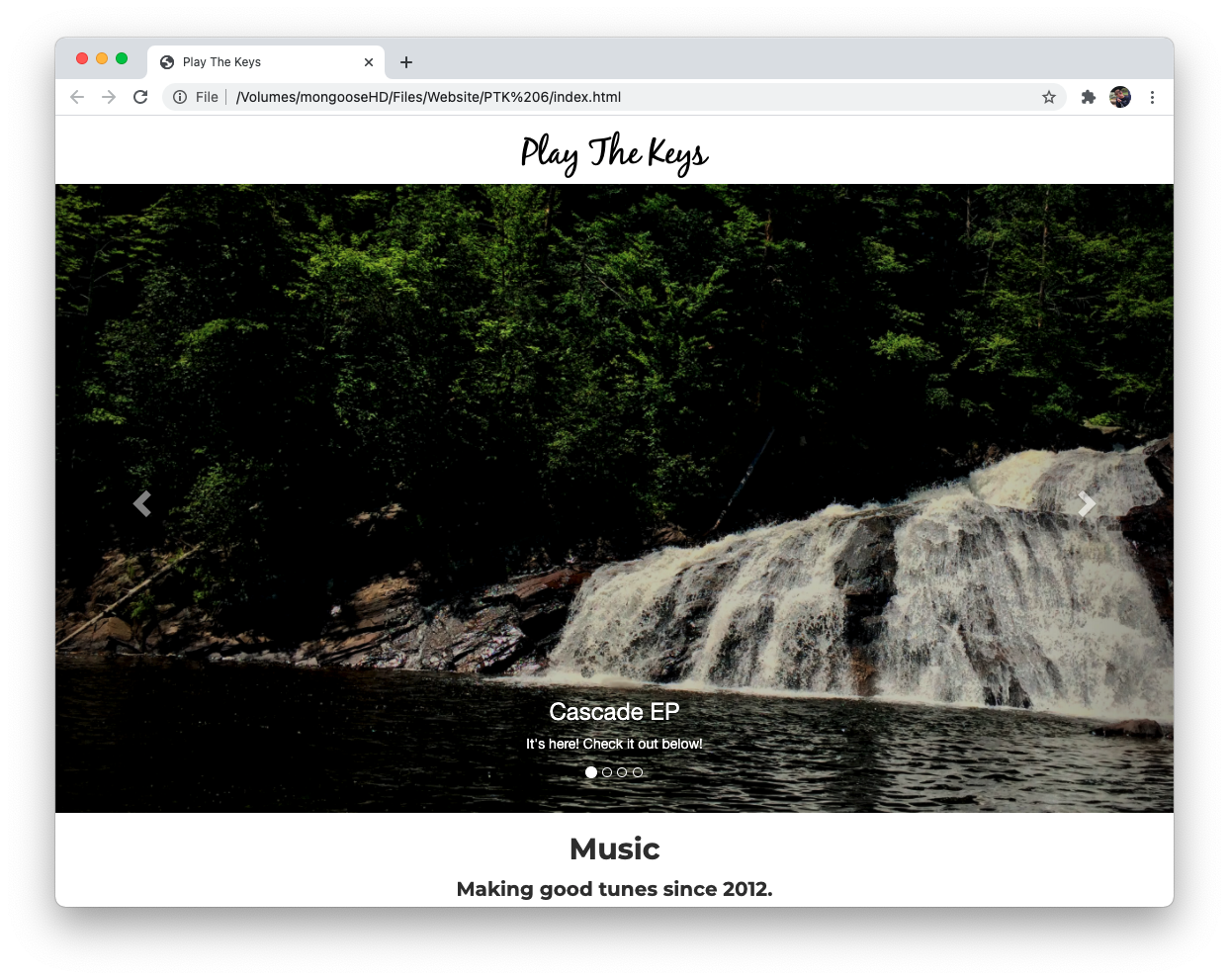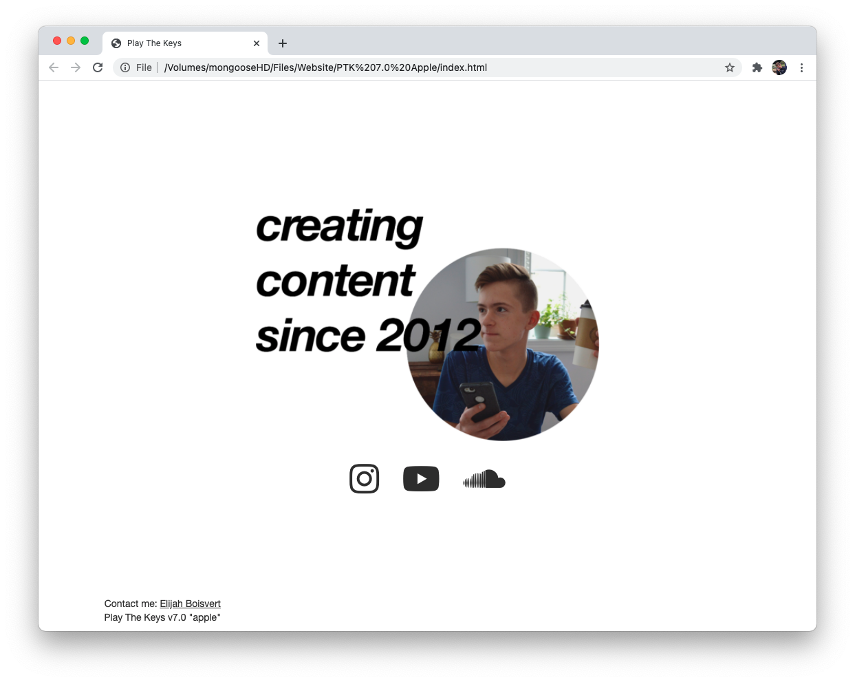 With Play The Keys 6.0, the website went back to being coded by hand, still with the help of Bootstrap. This website was primarily created to promote Elijah's new album, "Cascade EP". Launched in May 2017.