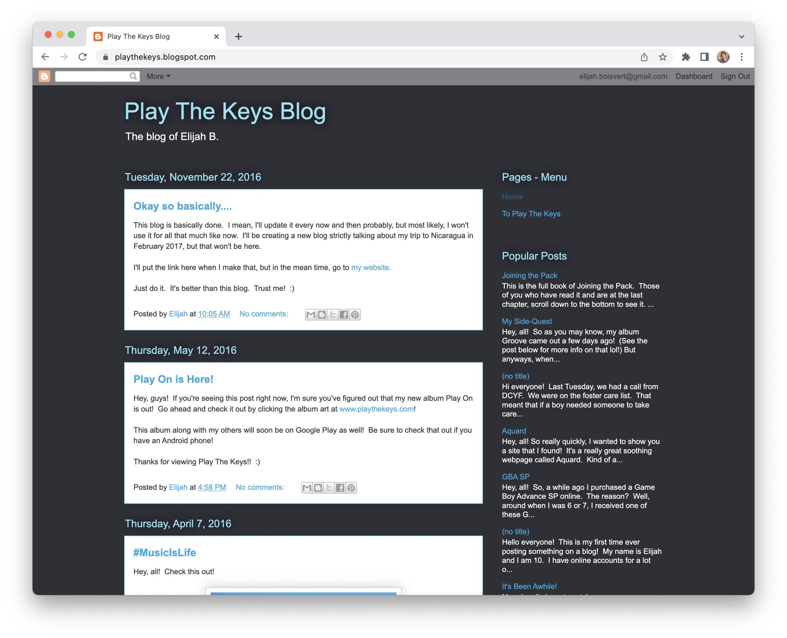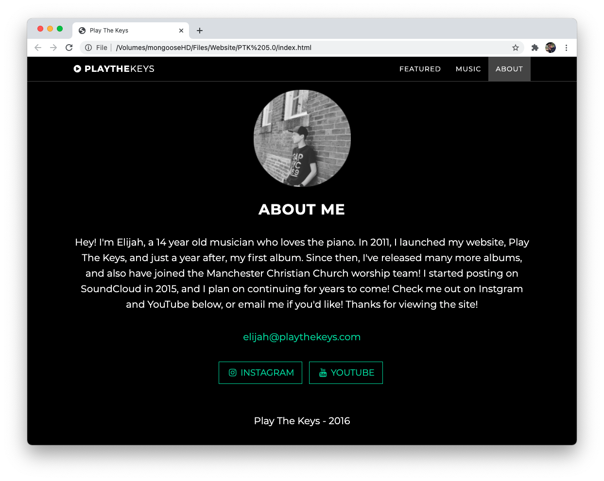 Created in 2013, this was the first iteration of the Play The Keys website. Elijah used iWeb on the family MacBook to create this back in the day! The original domain, "playthekeys.com" was acquired for this version of the website.