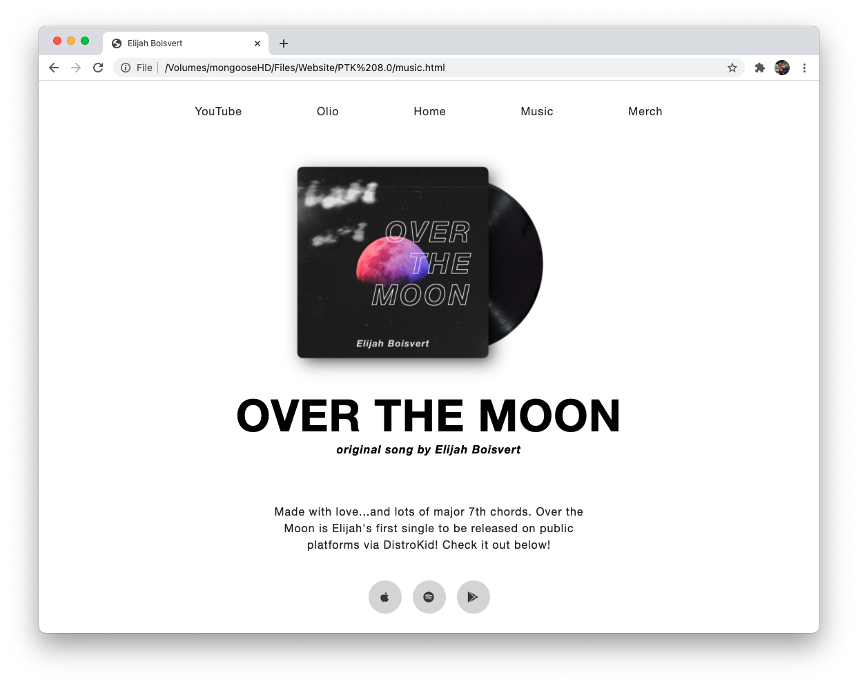 Clicking on the "Music" tab in the top menu bar of version 8.0 would bring users to this page. This page switched the music it was promoting a few times in its lifespan, but was primary used to share "Over The Moon" (released in 2019).