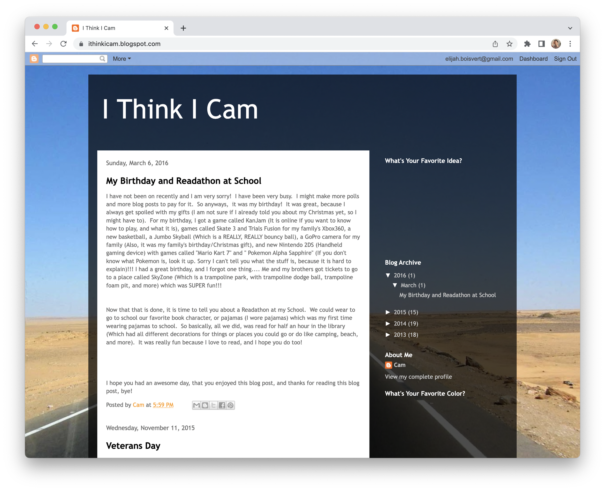 That’s right! Camden had a blog too. Something about