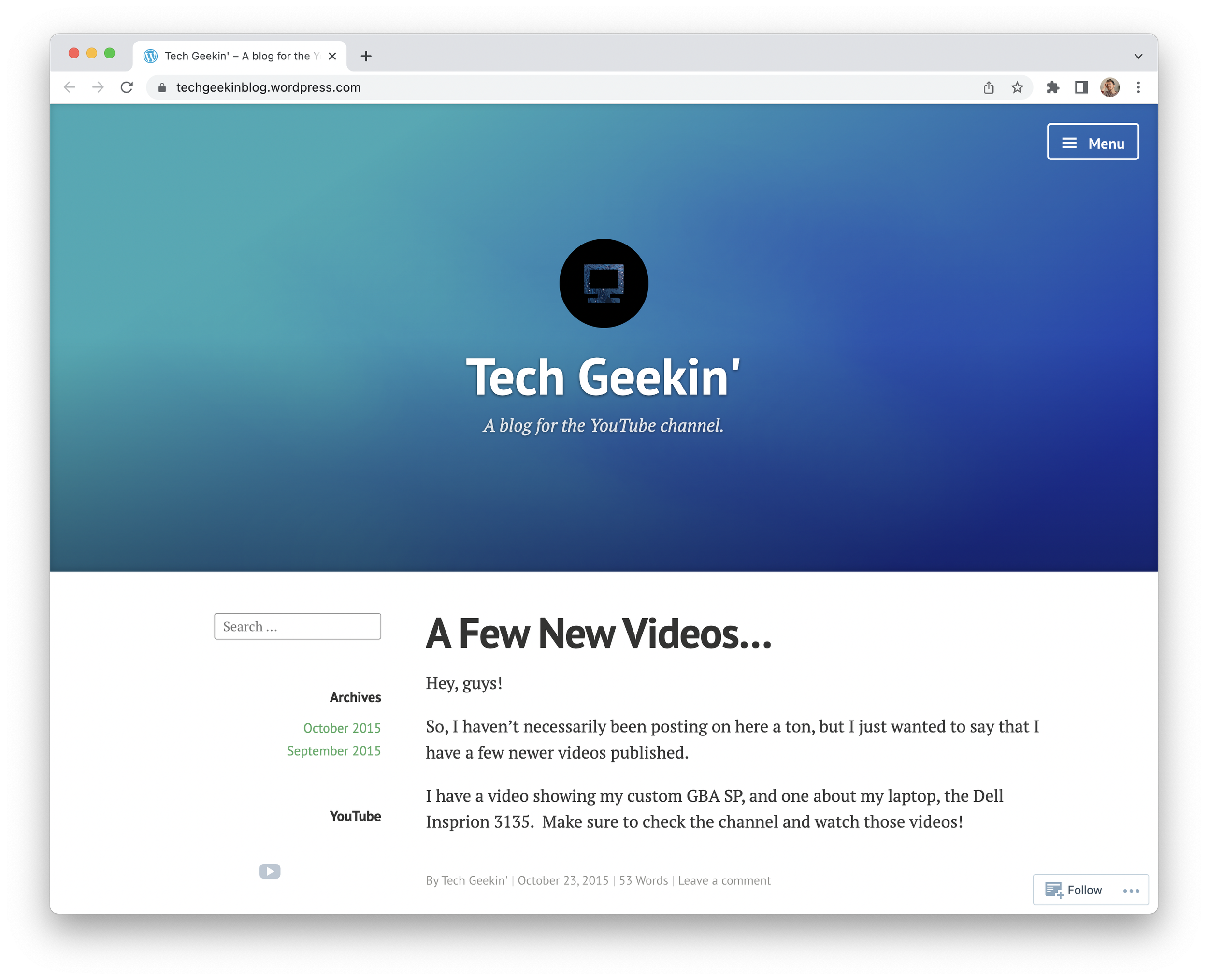 A very short-lived blog for the YouTube channel, Tech